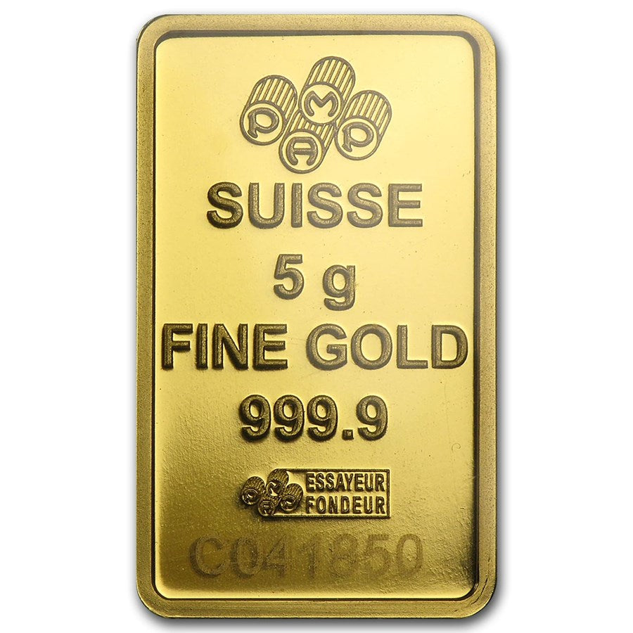 This gold bar is a wonderful addition to any gold bullion collection and is a popular way to build any investment portfolio. Add this 5 gram PAMP Suisse Gold bar to your collection today!