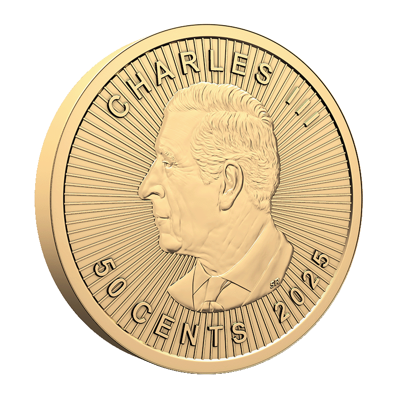 The obverse side of the coin displays Susanna Blunt’s depiction of Queen Elizabeth II, along with the date. The reverse side of the coin displays an iconic maple leaf design featured on all Gold Maple Leaf coins, along with the coin’s weight and purity.