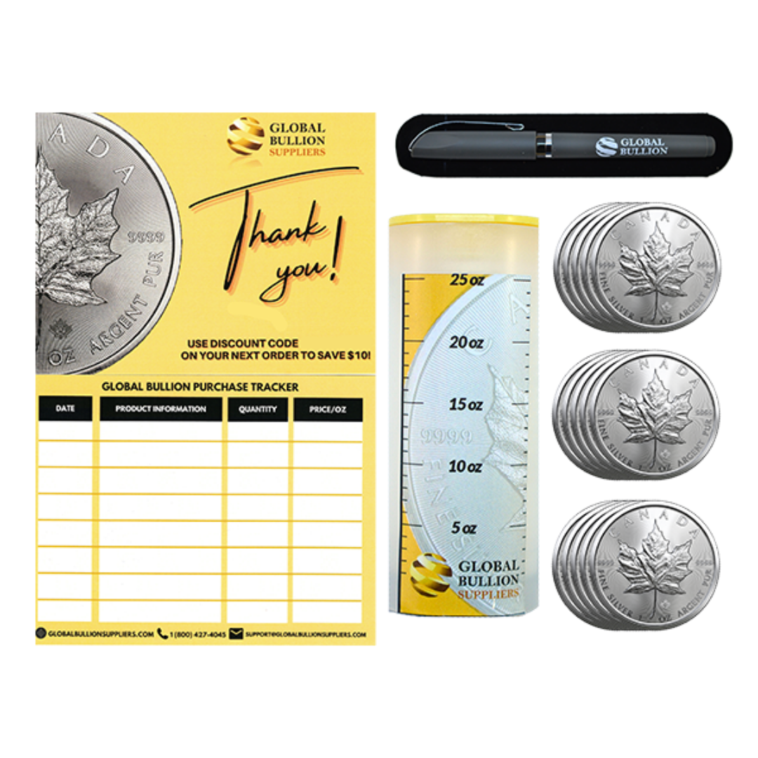 The Global Bullion Supplier silver bullion starter kit is the perfect way to begin investing into silver bullion.
